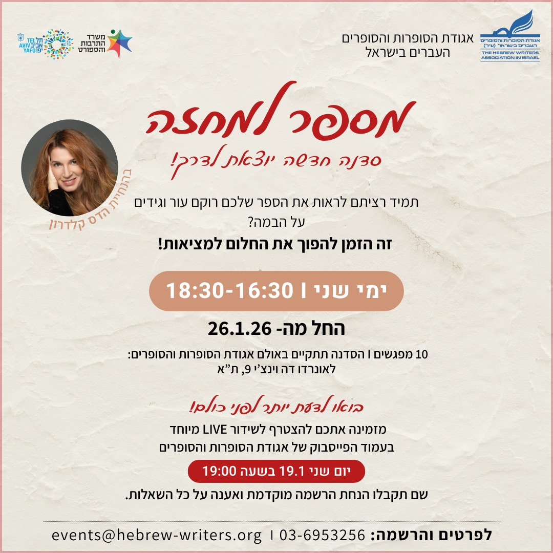 מתחילים ב-26.1.26 | ימי שני 16:30-18:30 - לאונרדו דה וינצ'י 9 (אולם אגודת הסופרות והסופרים)